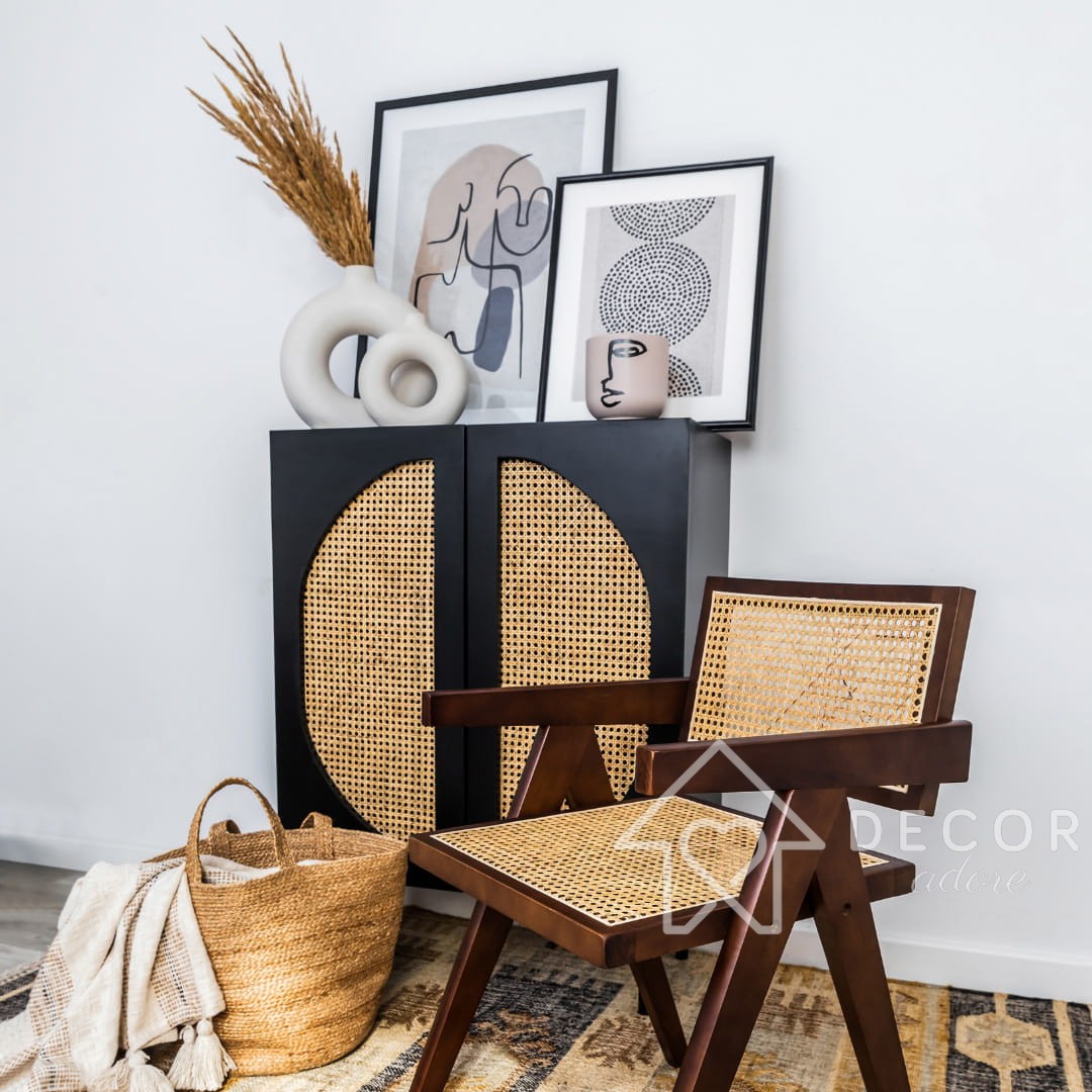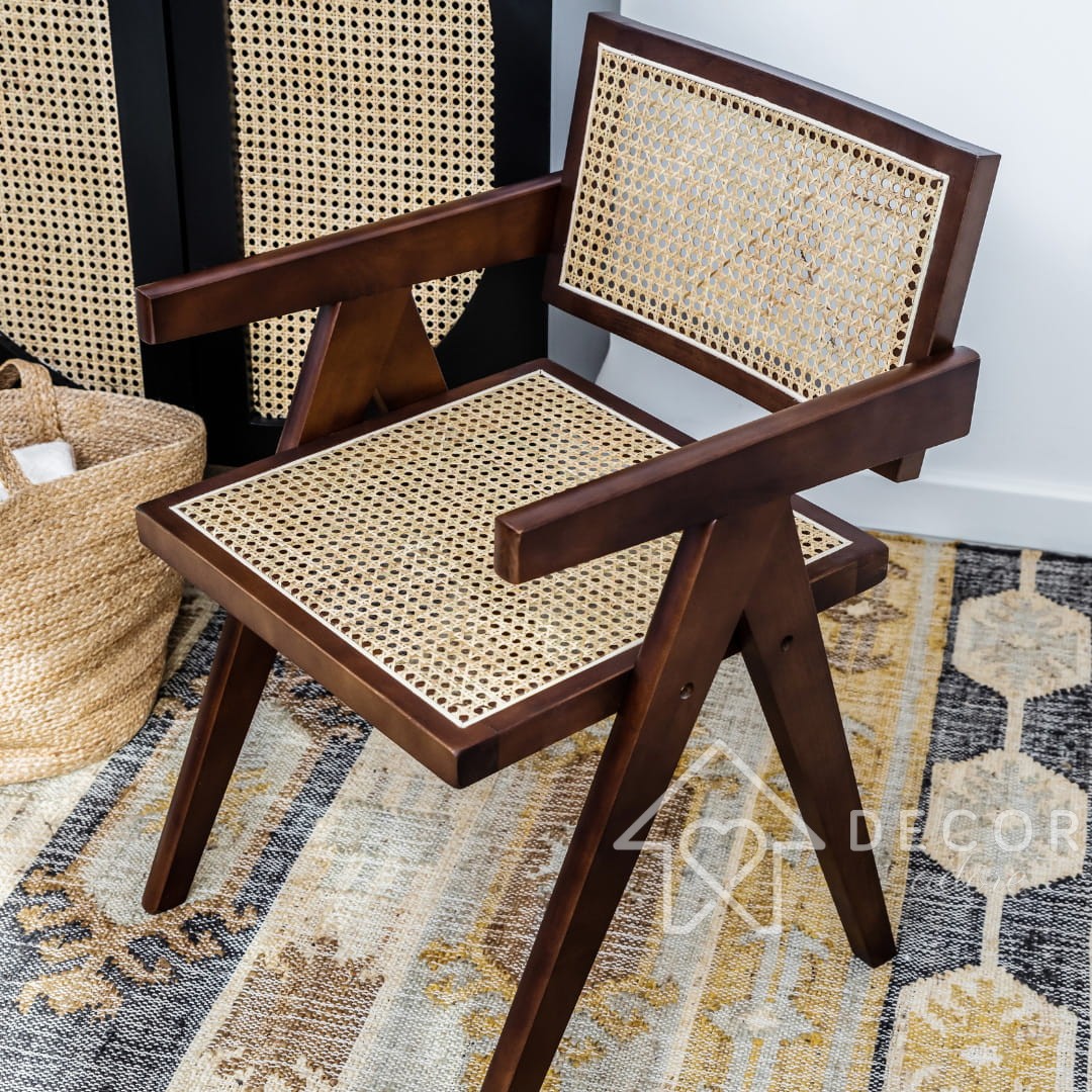 Drewniane Rattanowe Krzesło Do Jadalni DINING / OFFICE insp. Pierre Jeanneret